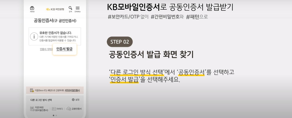2) 은행 방문 없이 공동인증서 발급 방법 (KB국민은행 기준)