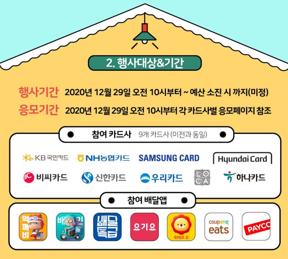 배달어플, 참여 카드사, 행사기간, 신청방법 등 안내