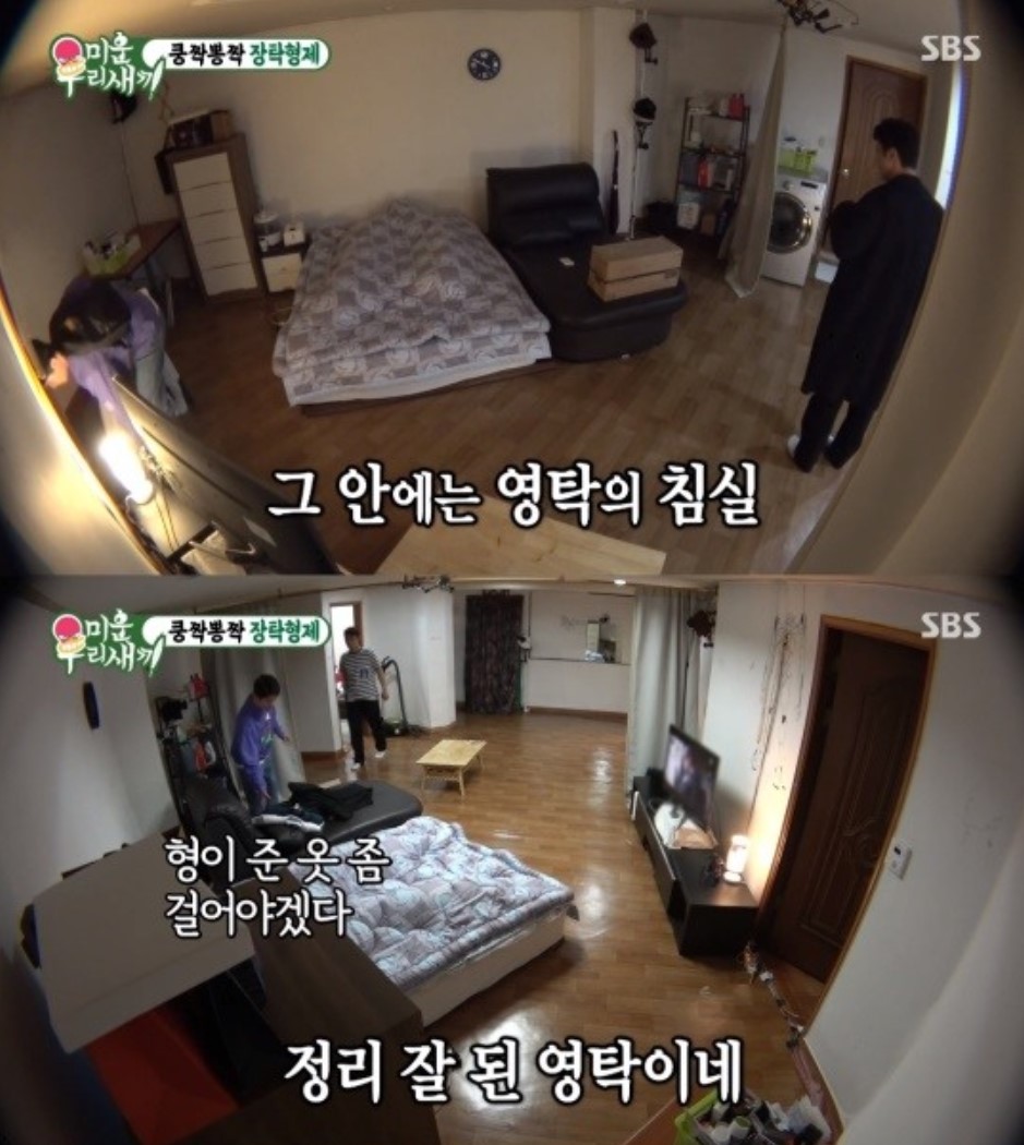 이사를 가기 전, SBS '미운오리새끼'에서 영탁의 집을 공개한 바 있는데요. 영탁은 장민호의 넓은 집을 부러워하며, "우리집은 햇빛도 안들어온다, 반지하라서 사람들을 부르기 좀 그렇다" 라고 얘기한 바 있어 출연자들의 마음을 짠하게 했었습니다. 이사가기 전 영탁의 집입니다.