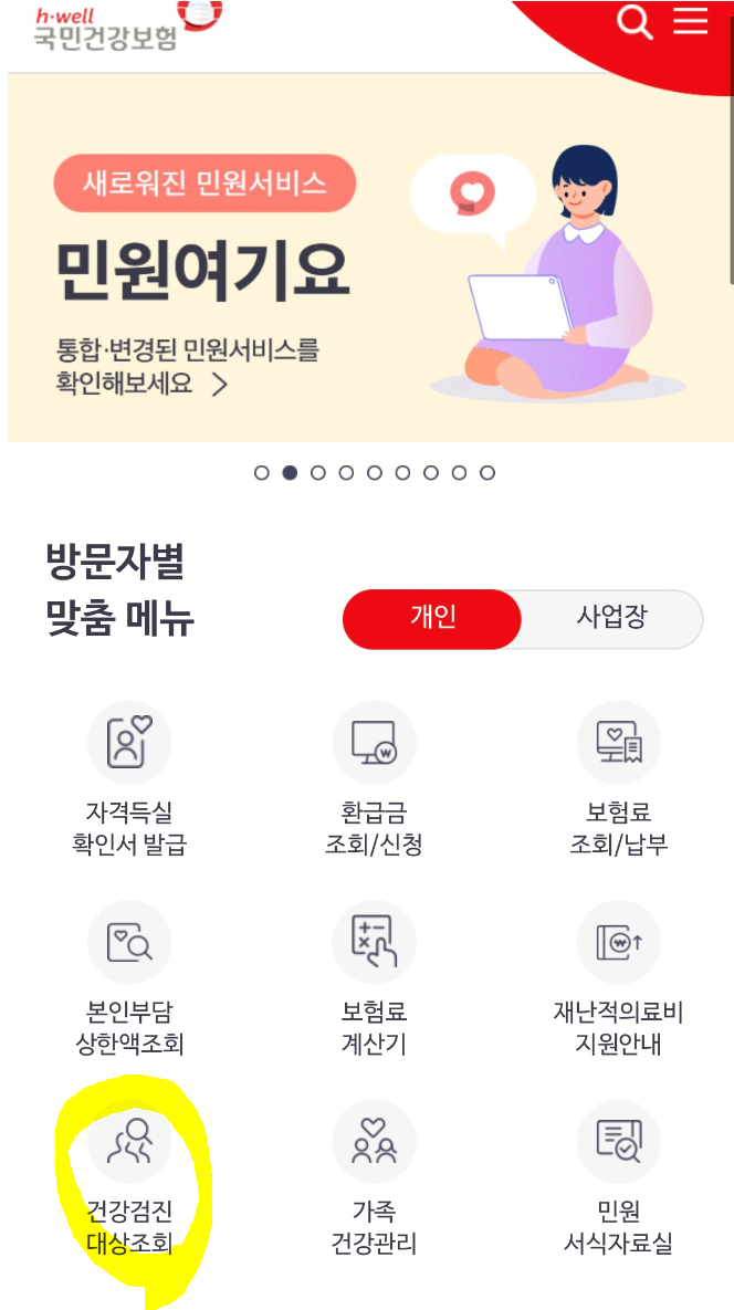 PC 또는 모바일 : 국민건강보험공단 홈페이지(www.nhis.or.kr)접속 후 메인메뉴에서 바로 확인 가능합니다.