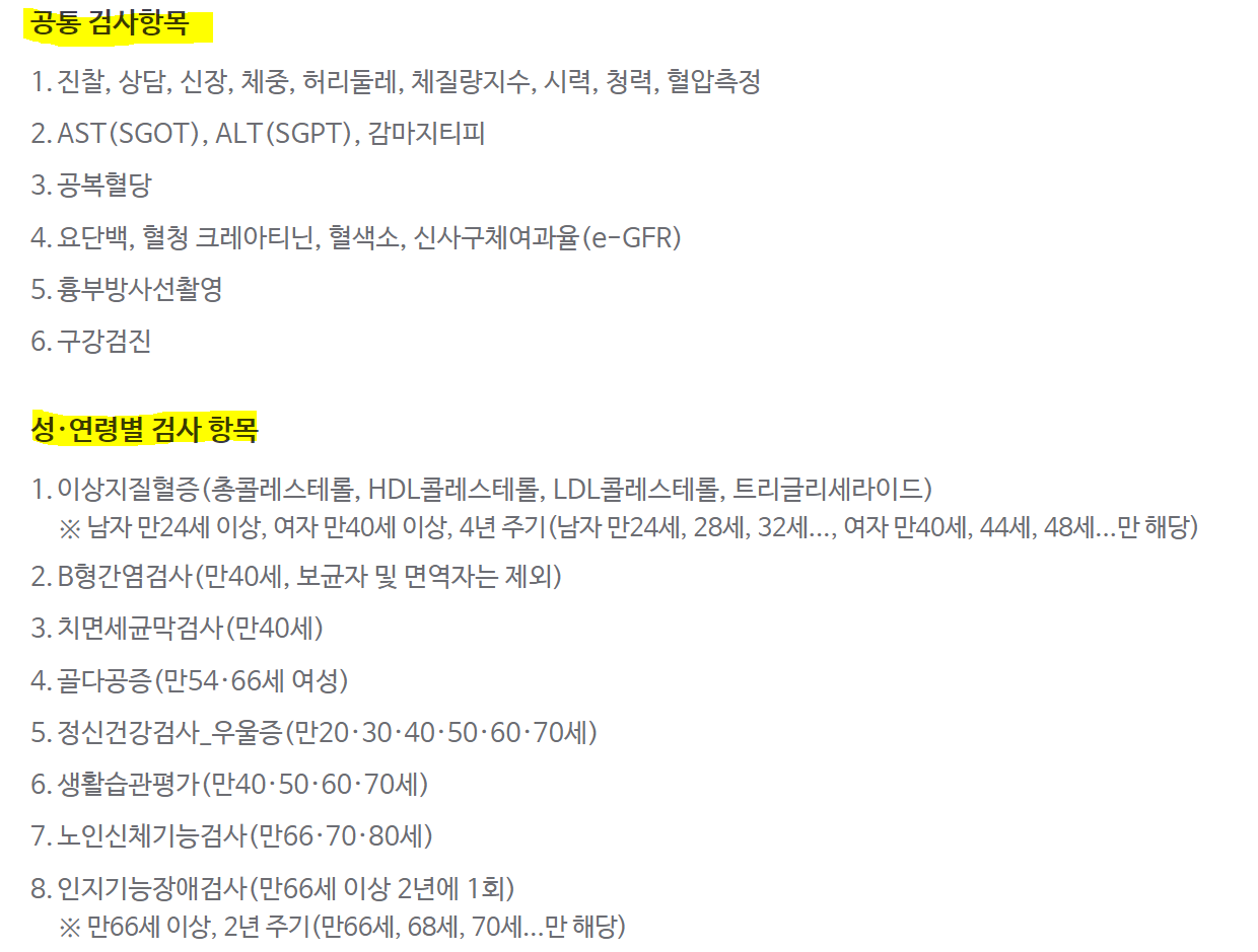 | 간암 | 만 40세이상 남녀 (6개월 1회) | 간초음파, 혈액 검사 |