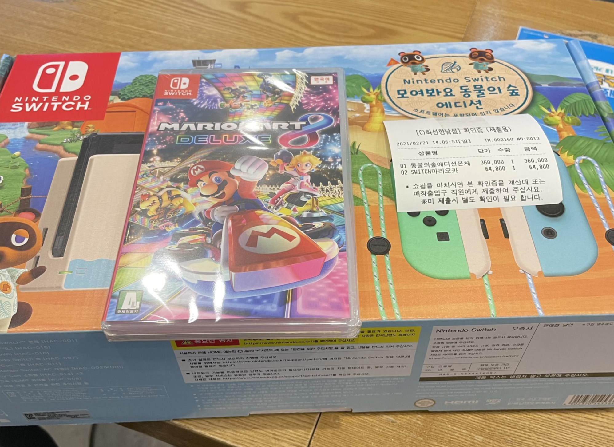 2021년 2월 21일 닌텐도 스위치 동물의 숲 에디션 + 마리오카트 게임팩 구매 영수증 인증합니다.