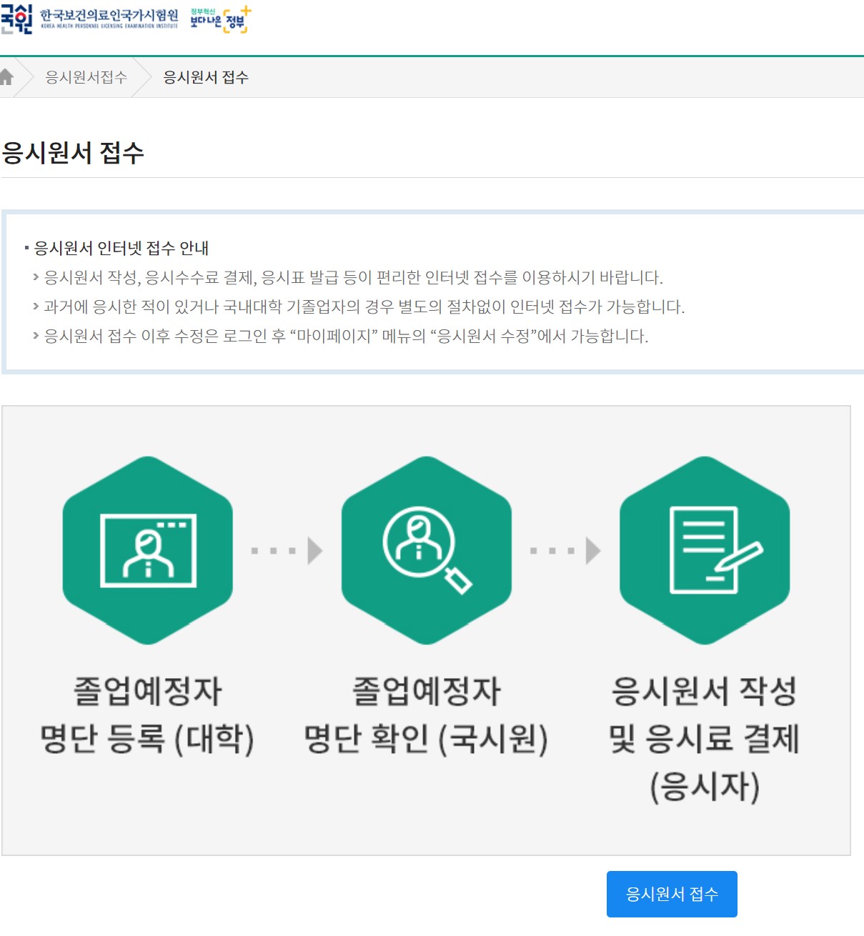 한국보건의료인국가시험원 응시원서접수 > 응시원서 접수 >