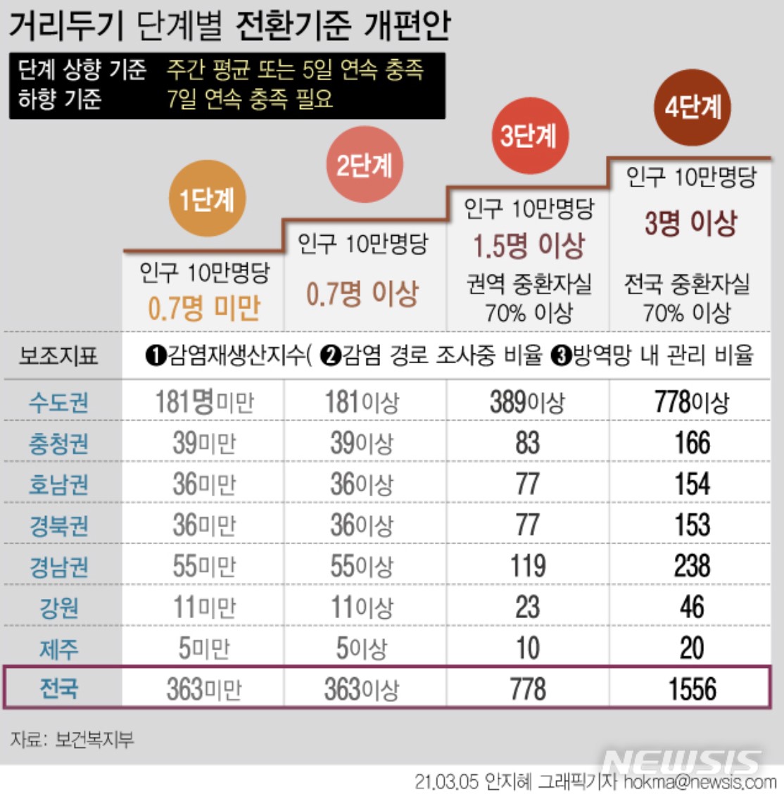 - 4단계 : 확진자 일 평균 1,556명 이상