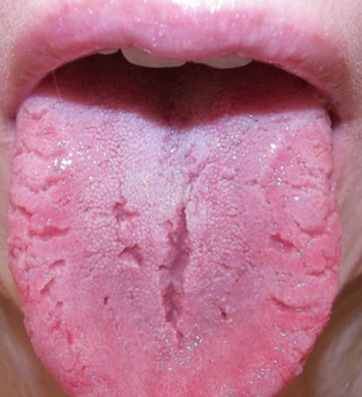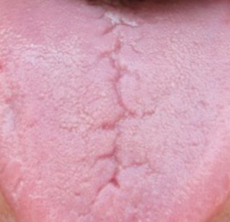 - 혀 윗면, 옆면에 균열 또는 홈, 갈라진 틈이 나타남