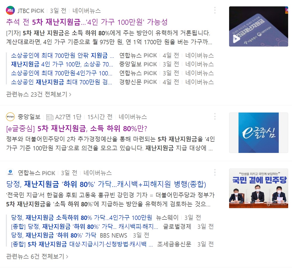 현재 정부에서는 5차 재난지원금에 대해 논의되고 있는 것은 아래 2가지입니다.