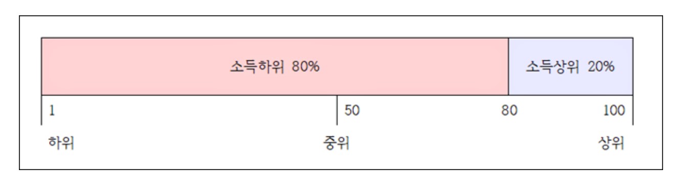 소득 하위 80%는 중위소득 200% 한 값으로 계산해보면 소득 하위 80% 값이 나와