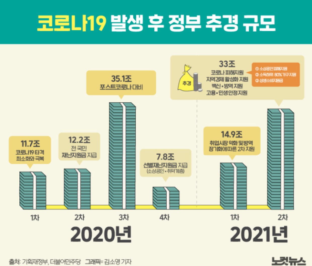 어려운 국민을 돕는 것은 좋지만, 쌓이고 쌓인 국채의 부담은 결국 남은 후손, 국민들이 감당해내야 하는 문제로 걱정이 되네요..