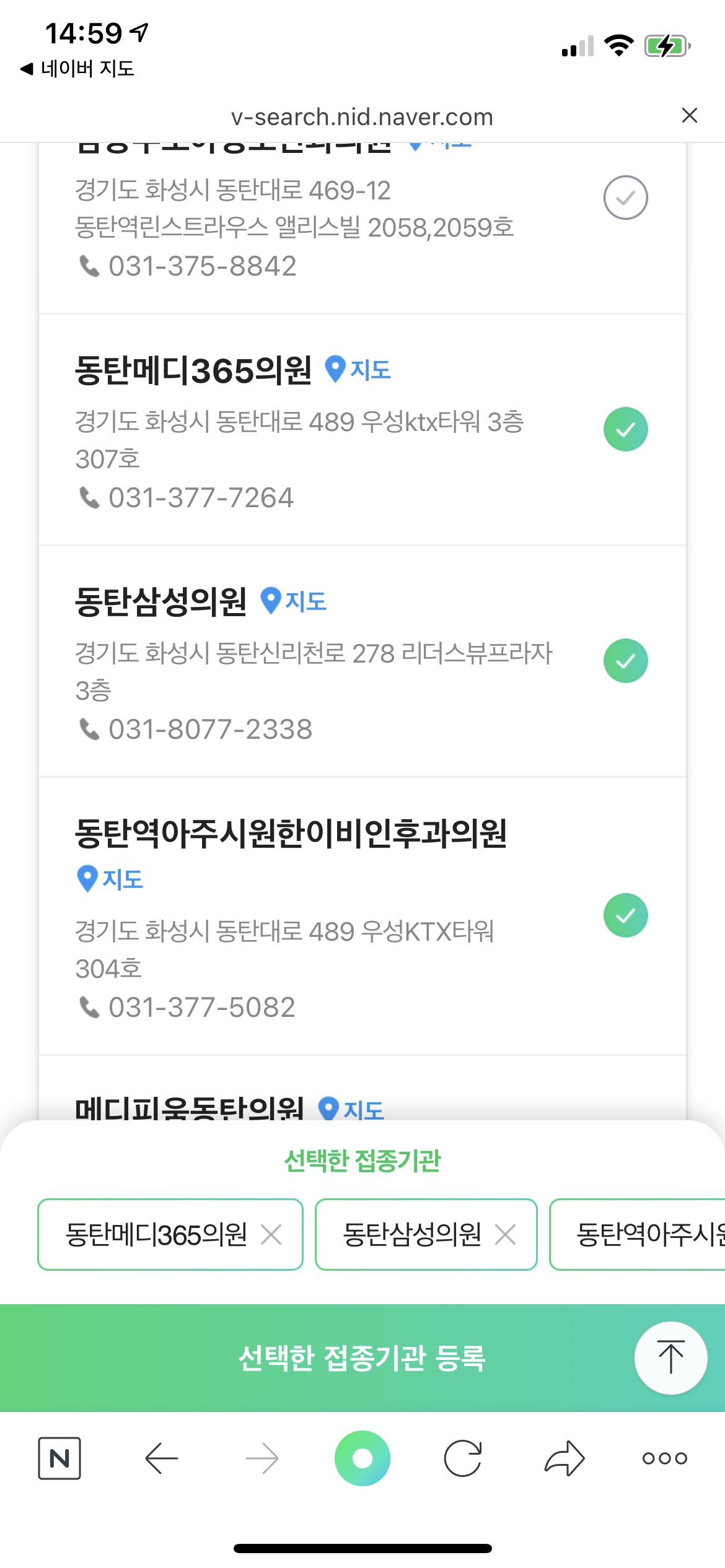 2단계에서 주소로 검색하면 여러 병의원들이 나옵니다.