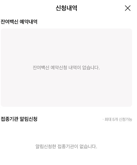 신청내역은 잔여백신예약을 눌러보면 확인이 가능합니다.