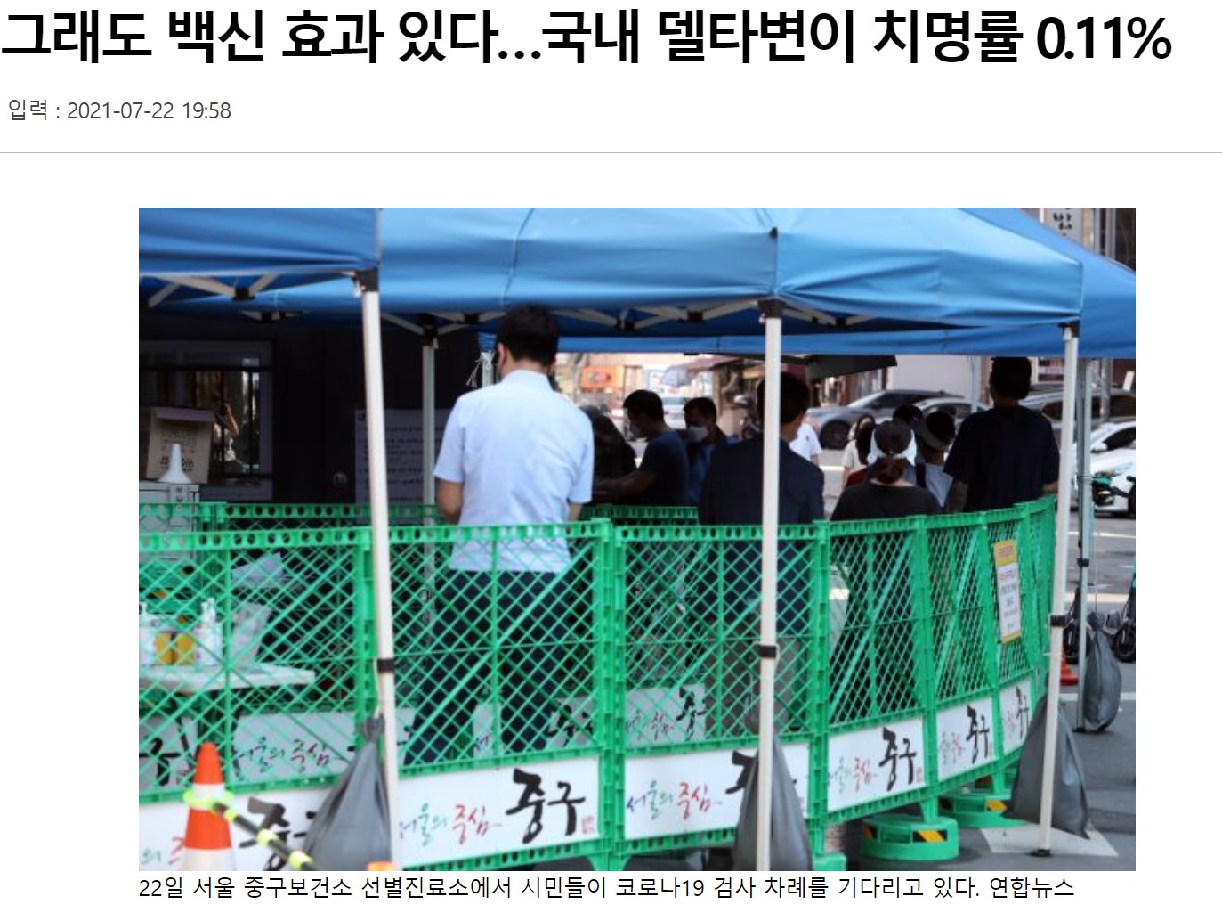 국내에서는 20일 기준, 델타변이 바이러스 치사율이 0.11%로 기록되었다고 합니다.