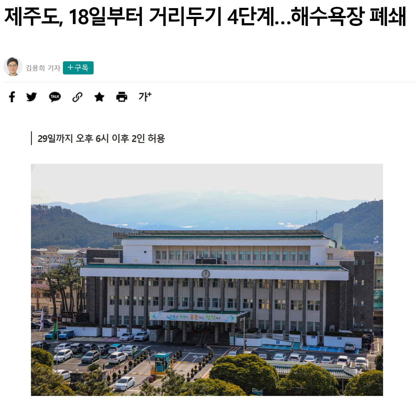 제주도가 8월 18일 0시 ~ 8월 29일 밤 12시까지 거리두기를 4단계로 격상하며