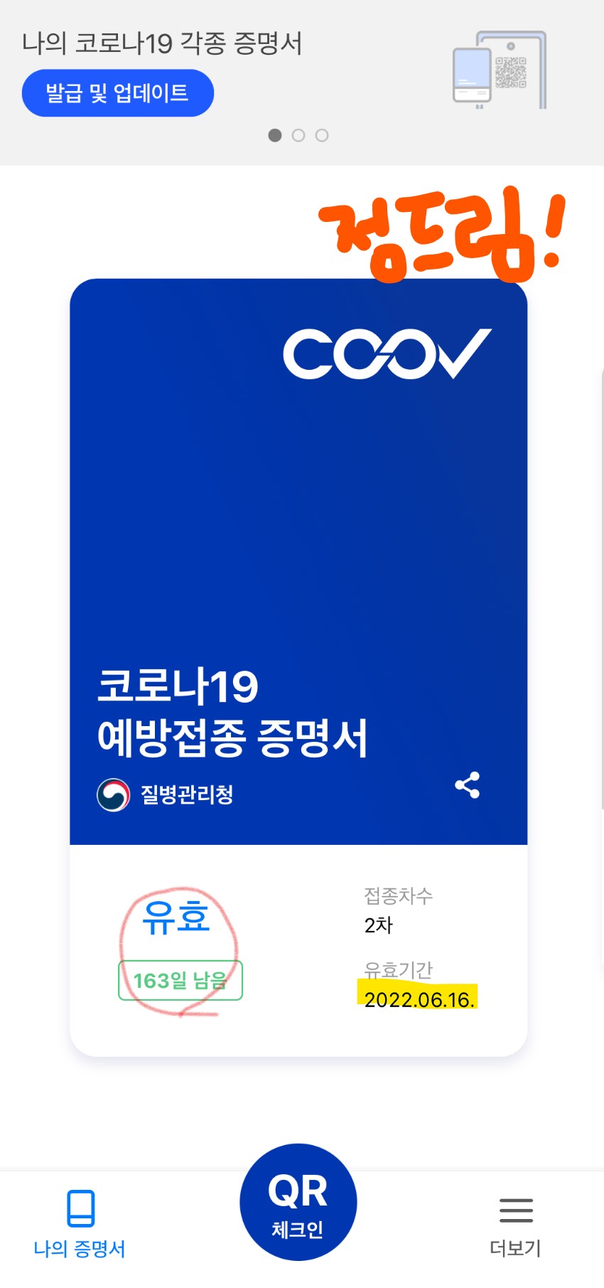 저의 방역패스 유효기간은 22년 6월 16일까지네요.