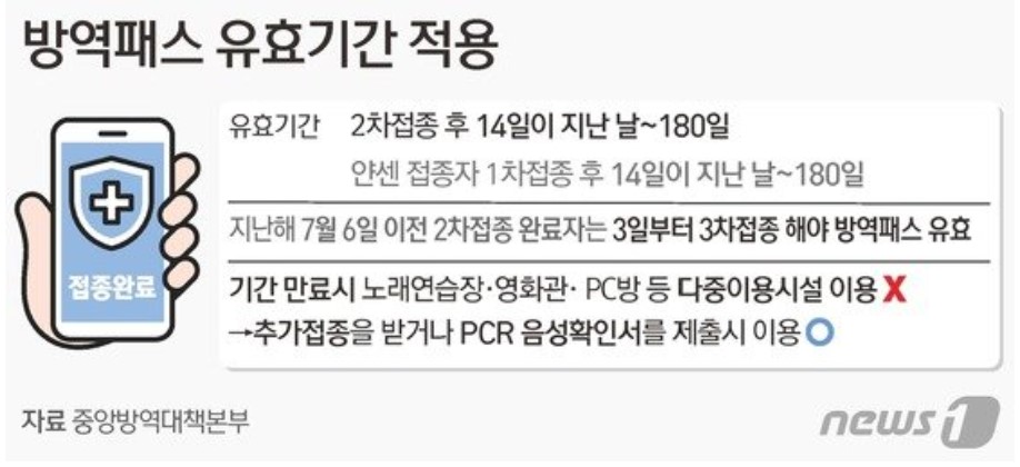 따라서, 지난 21년 7월 6일 이전에 2차접종을 완료한 사람은 1월 3일부터 3차접종을 해야 방역패스가 유효합니다.
