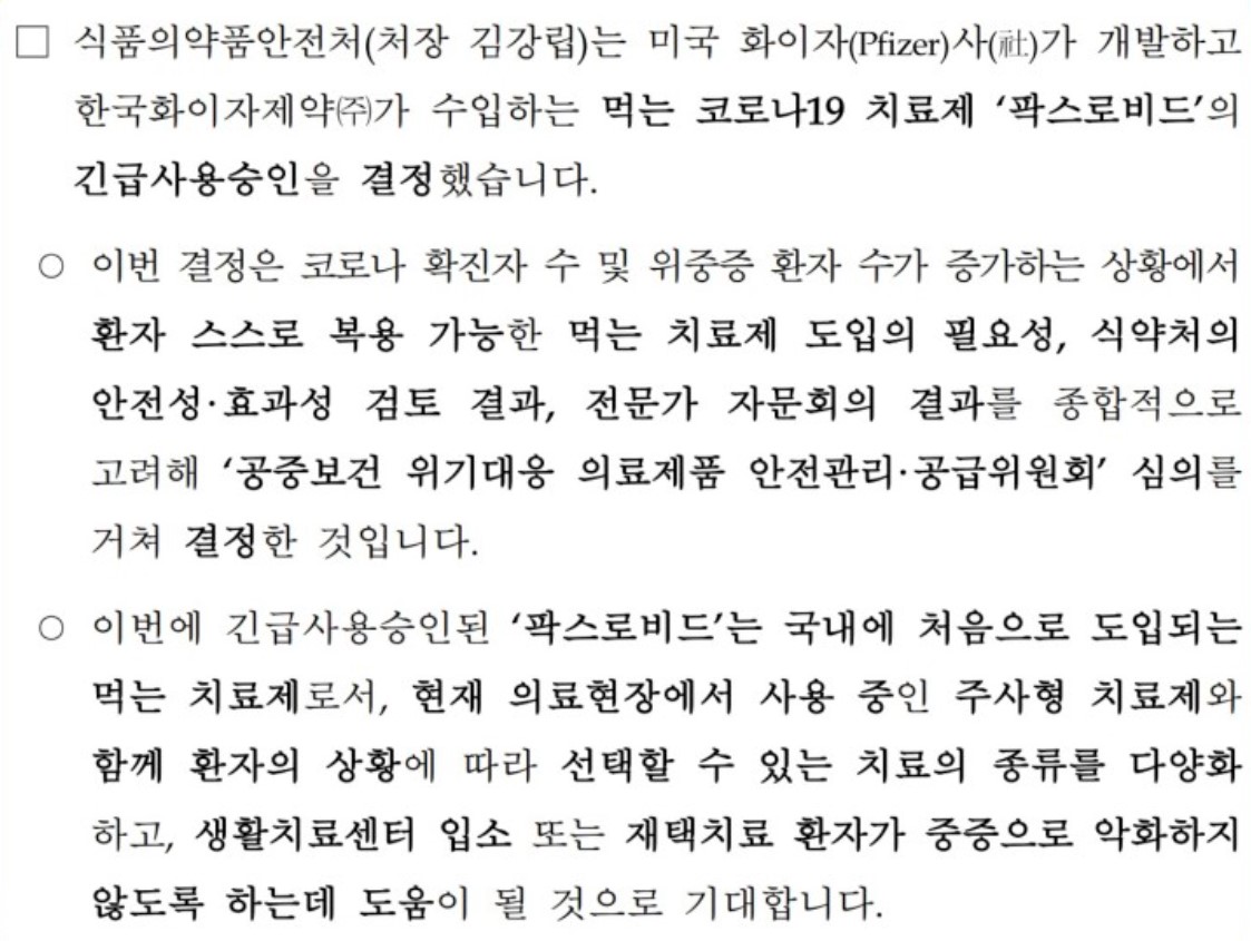 코로나 먹는 치료제 가격은 식약처가 따로 국내 구매 가격은 공개하지 않았으나