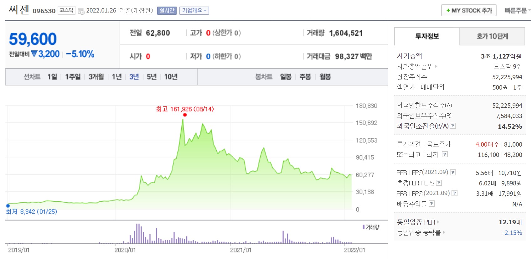 시총 3조 1천억원으로 코스닥 시장에 시가총액 9위에 위치하고 있습니다.