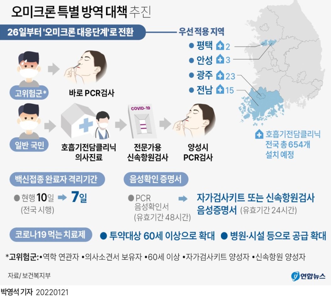 광주, 전남, 평택, 안성 등 오미크론 우세화 지역 4곳에서 오미크론 대응체계 적용 후