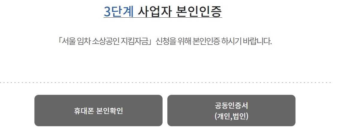 서울 소상공인 지킴자금을 신청하기 위해 본인인증이 필요합니다.
