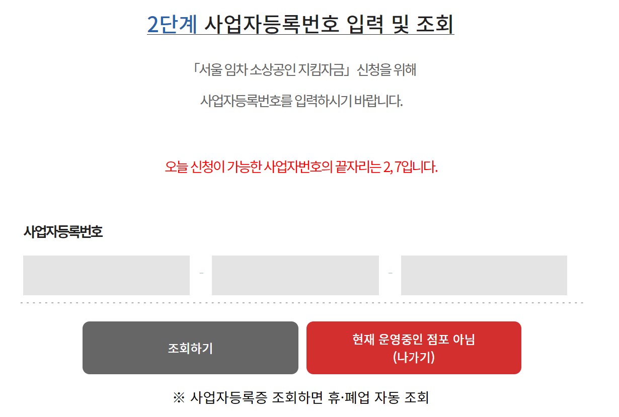2. 사업자등록번호 입력 및 조회