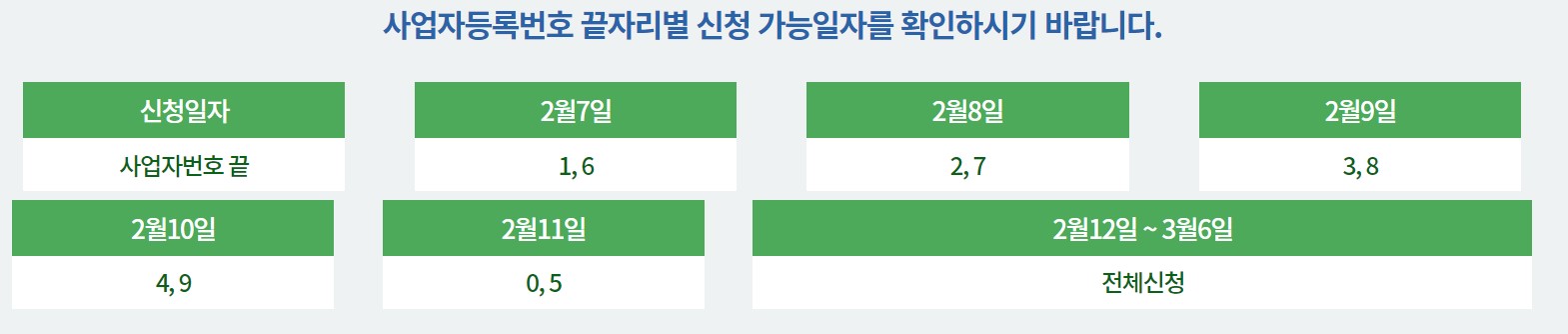 2월 12일 ~ 3월 6일까지는 5부제가 아닌 전체 신청이 가능하니 참고하시면 되겠습니다.