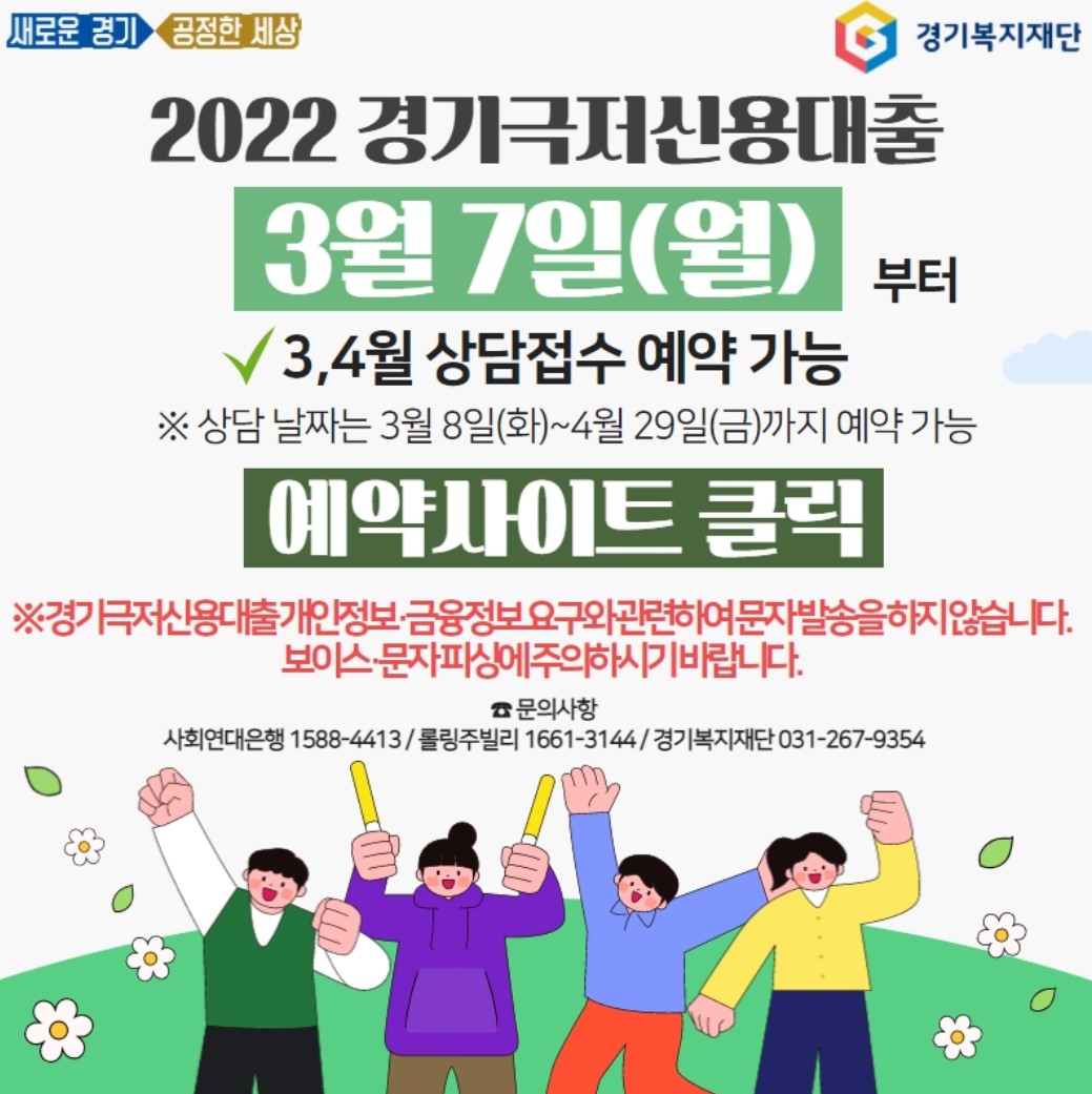 경기도는 생계가 어려운 저신용자에게 최대 300만원을 지원하는 경기 극저신용 대출 신청 접수를 3월 7일부터 시작합니다. 경기 극저신용 대출은 신용등급이 낮아도 저금리로 최대 300만원까지 대출을 지원하는 사업인데요. 아래에서 경기 극저신용 대출 신청, 입금, 예약 등에 대해 자세히 안내드리겠습니다.