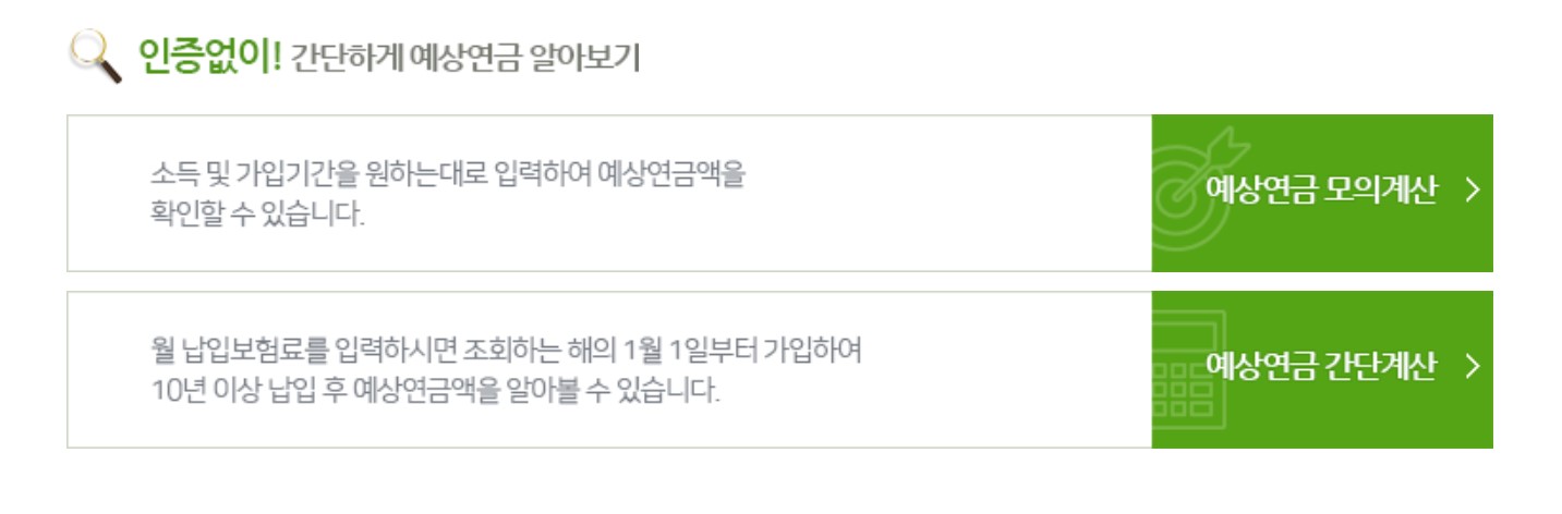 소득 및 가입기간을 원하는대로 입력 후 예상연금액 모의계산