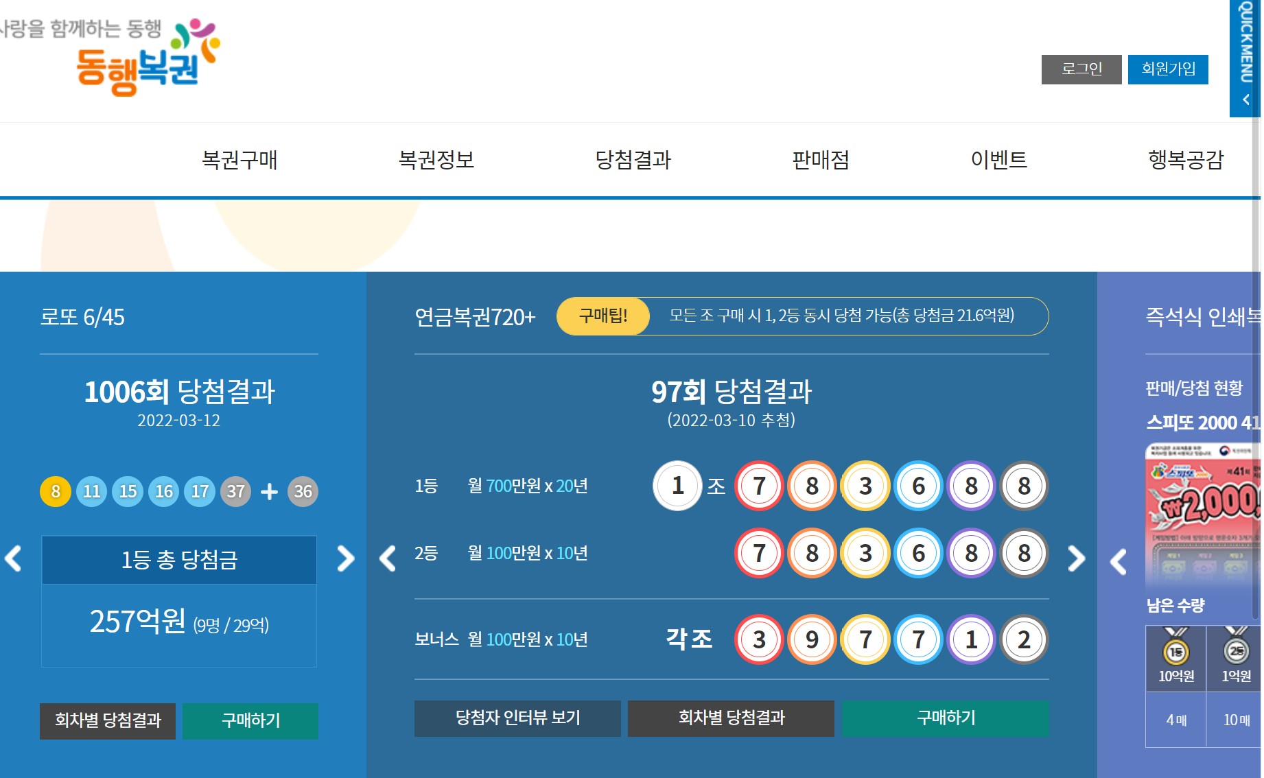 저 역시 매주 토요일 소소하게 로또를 구매하면서, 1등되면 뭐할까? 행복한 고민을 하며 같은 기대를 해봅니다. 운이 좋으면 5,000원이 당첨되기도 하지만 거의 낙첨. 복권 판매점에서도 구매하지만 요즘은 온라인으로도 로또 구매가 가능합니다. 또 최근들어 온라인에서 로또 구매한 분들께서 1등 당첨도 꽤 되는 것 같아 온라인으로 로또 구매하는 분들도 많아진 것 같습니다. 오늘은 로또 구매 사이트, 온라인 로또 구매방법, 온라인 로또 시간에 대해 아래에서 안내드리겠습니다.