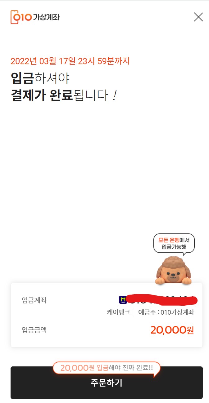 결제금액, 계좌주명, 가상계좌 등이 맞는지 확인하고 입금을 하시면 예치금이 충전 됩니다. 카톡으로도 안내 문자가 오니 가상계좌로 입금하시면 됩니다.