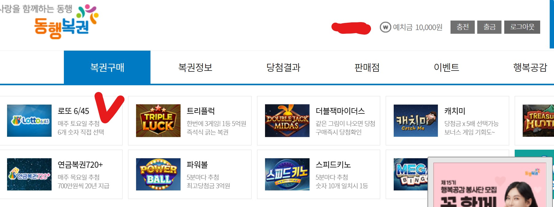 우선 로또 구매 사이트인 <동행복권> https://www.dhlottery.co.kr/ 홈페이지에 접속하면 됩니다.