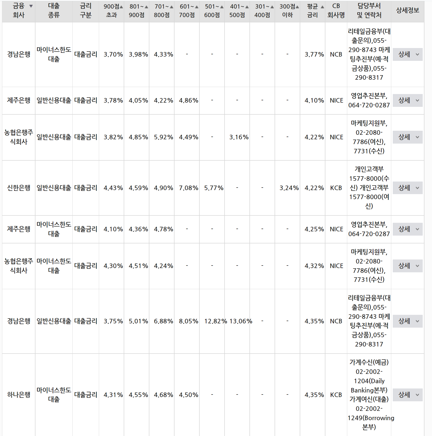 4월 12일 기준 농협은행 4.32% 국민은행 4.57% 신한은행 4.23% 우리은행 4.62% 기업은행 4.57% 등으로 평균 4%대의 금리로 편성되어 있습니다. 마이너스통장의 경우 금리가 수시로 바뀔 수 있기 때문에 위 사이트들에서는 즉각적으로 반영이 되지 않을 수도 있습니다. 따라서 각 은행에 직접 문의하는 것이 좋겠습니다.