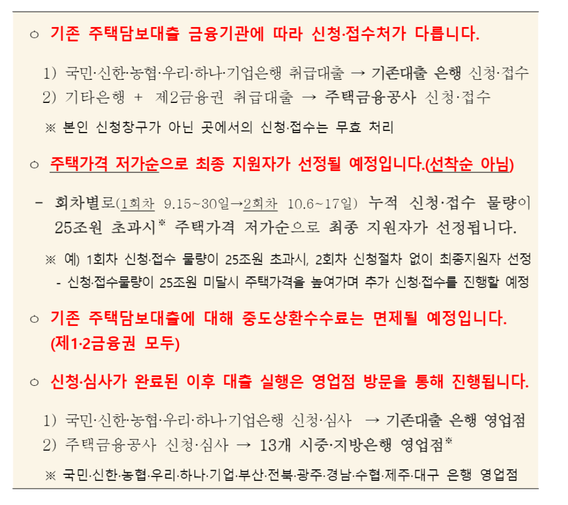안심전환대출 신청방법은 기존 주담대 금융기관에 따라 신청이 상이합니다.