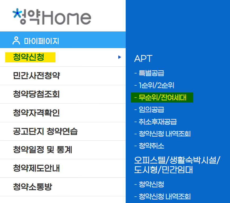 <APT 무순위 - 주택명 및 주택형 선택 - 유의사항 청약자격 확인 - 인증서 전자서명 - 완료> 순서대로 진행하면 됩니다.
