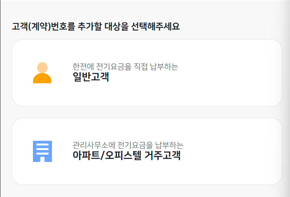 주택이면 일반고객, 아파트면 아파트/오피스텔 거주고객을 클릭합니다.