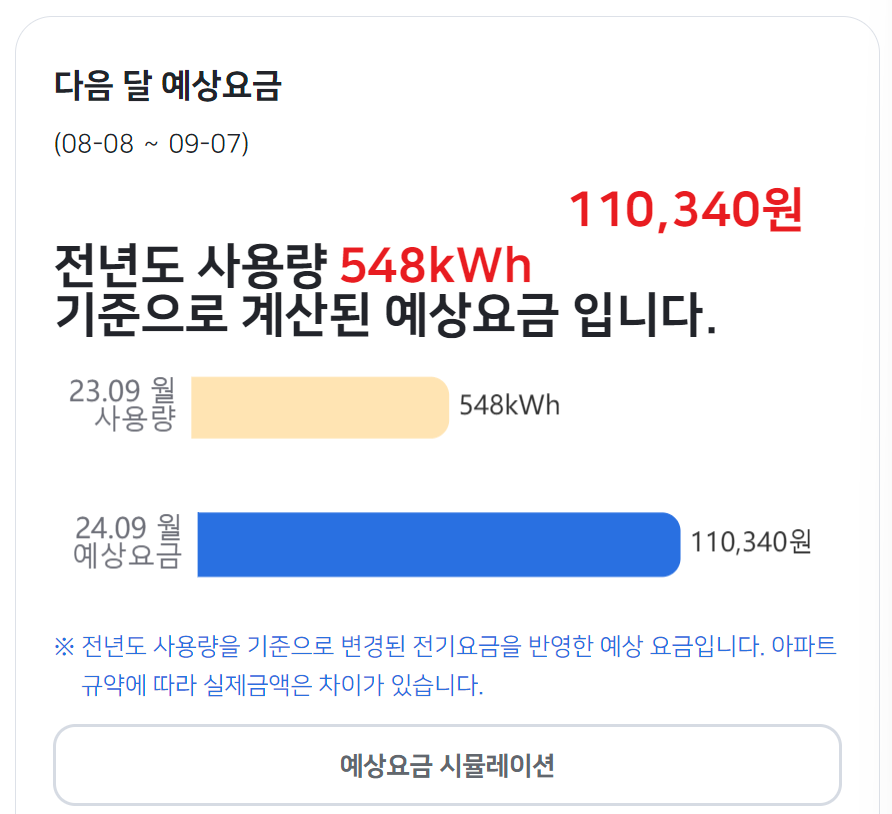 전년도 사용량 기준으로 다음달 예상요금도 나와주니 아껴쓰도록 독려하는 역할을 톡톡히 하네요