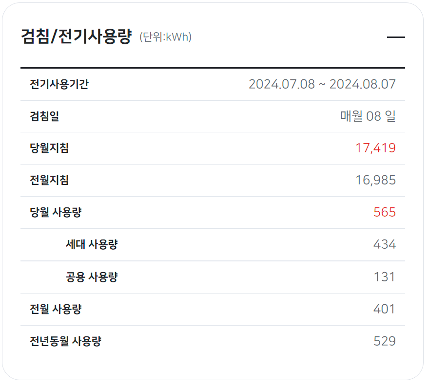 이웃 전기사용량도 나와서 비교할 수 있고요.