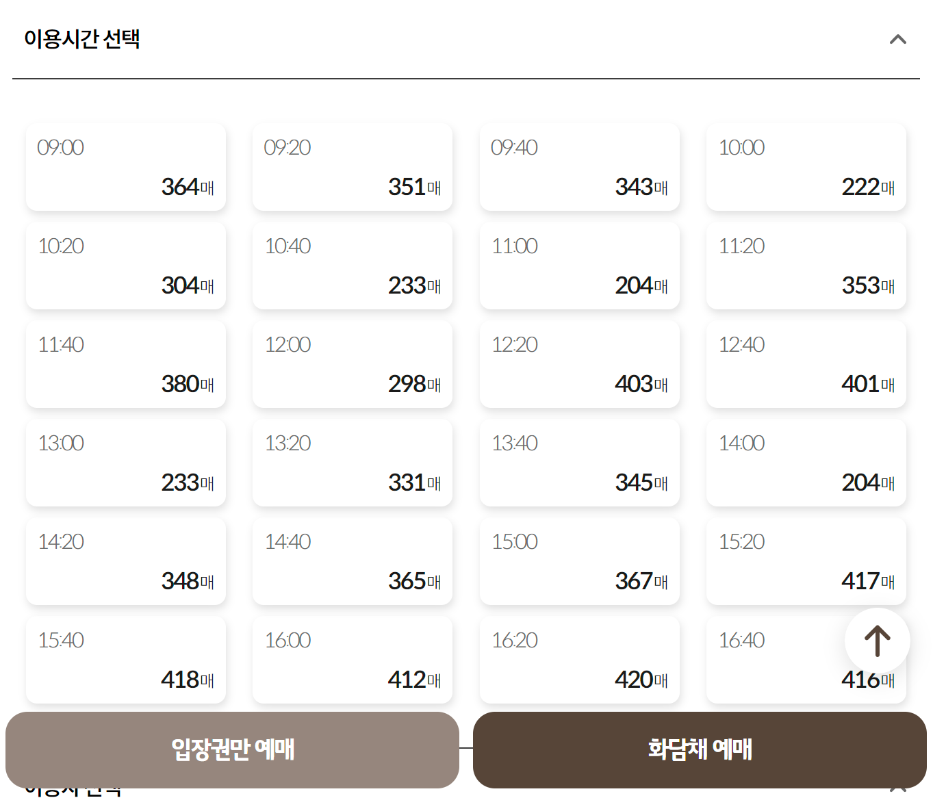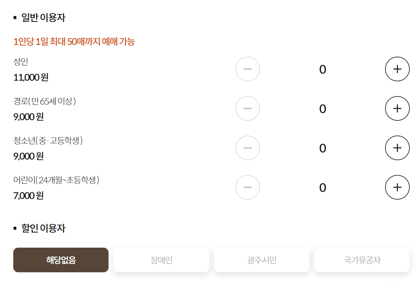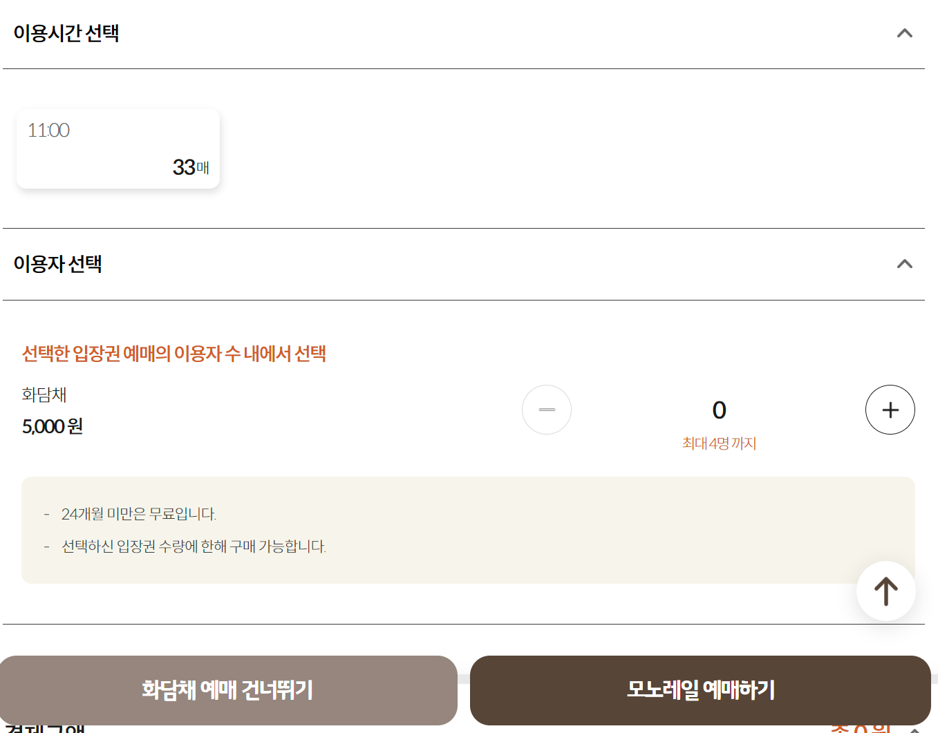 모노레일 이용하지 않는 분들은 입장권만 예매를 하면 됩니다.
