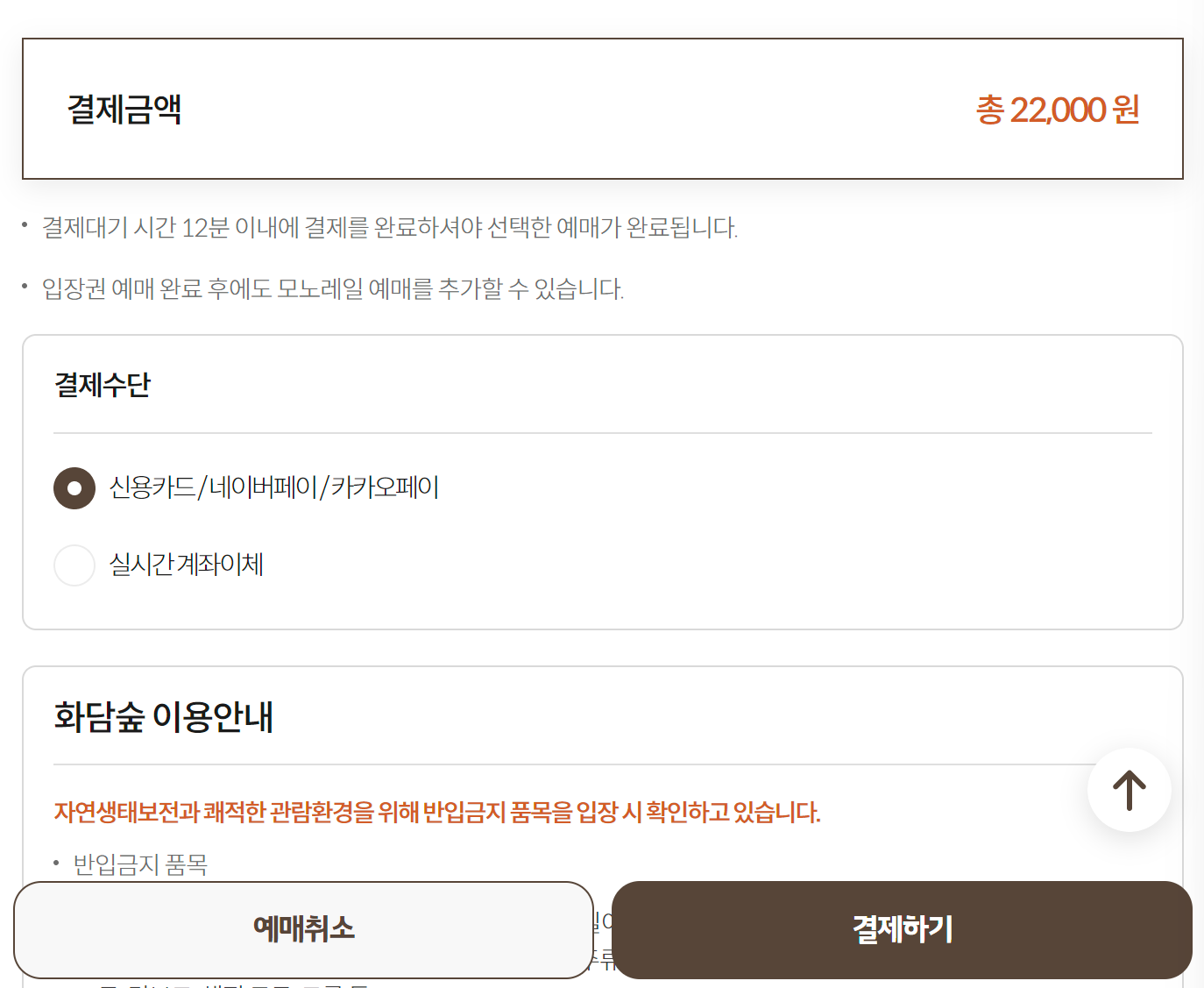 모노레일을 이용할 분들은 화담채 예매 > 모노레일 예매하기를 진행하면 되고