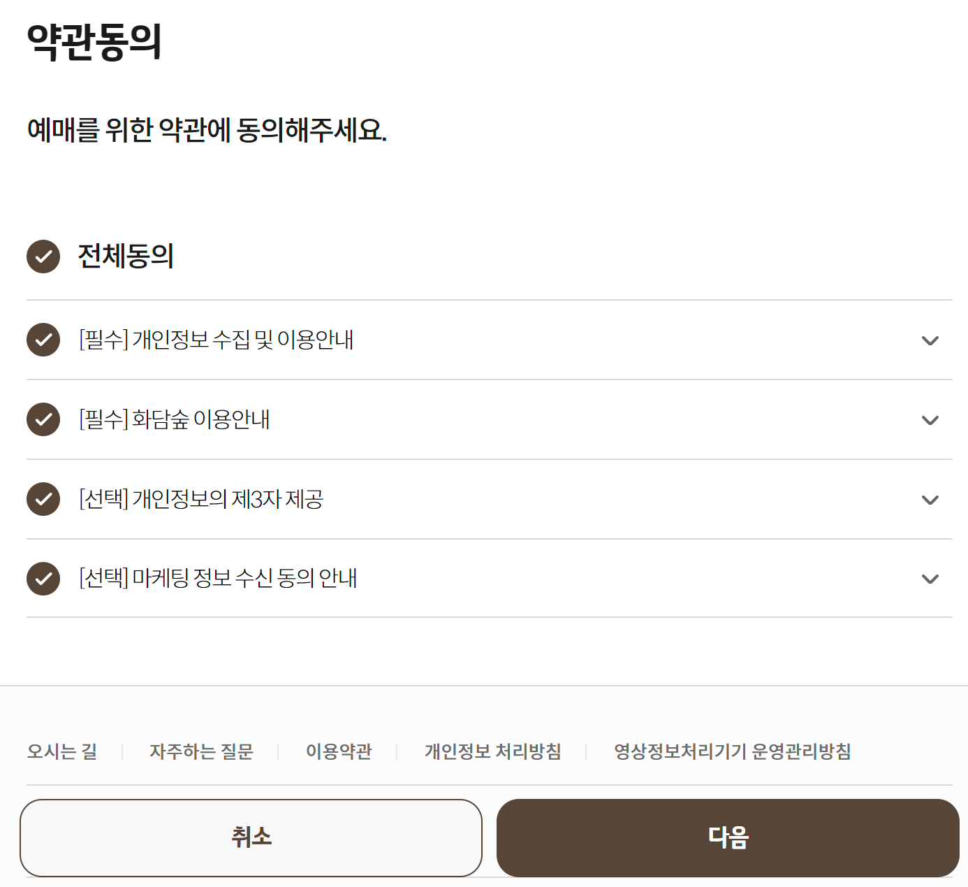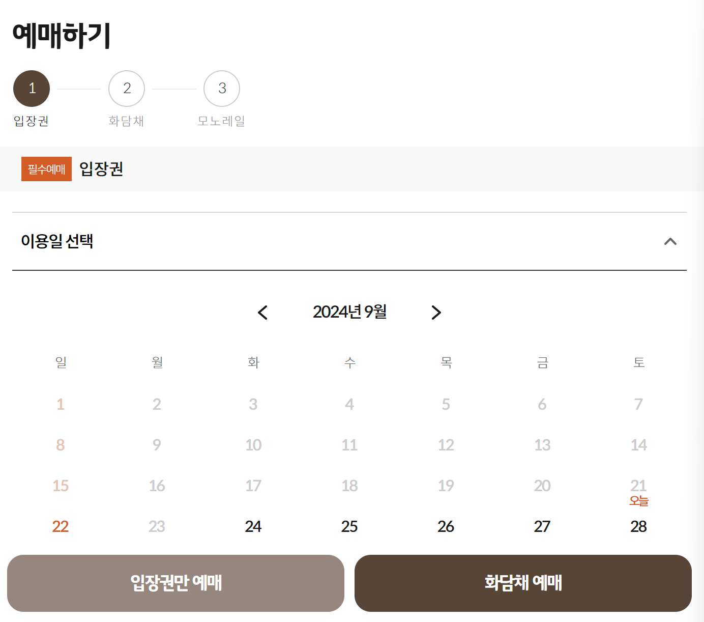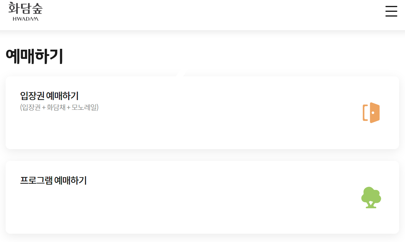 화담숲 예약 홈페이지에 접속하여 입장권, 화담채, 모노레일을 예매할 수 있어요.