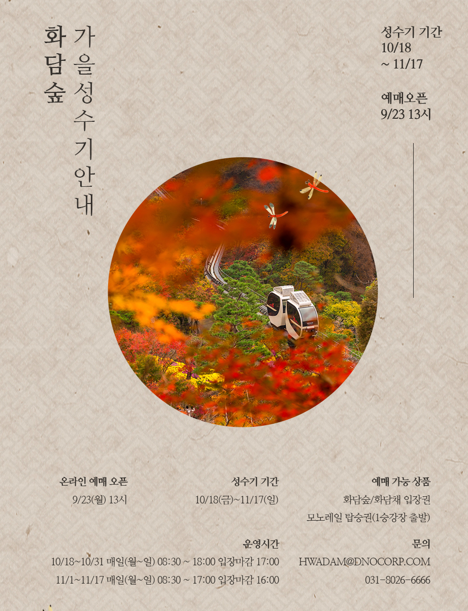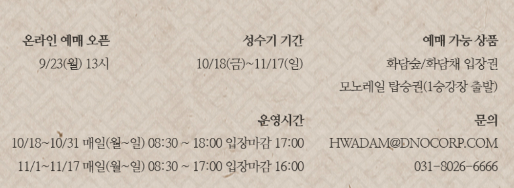 화담숲 단풍 예약은 9월 23일 오후 1시에 오픈한다고 하니 미리 날짜를 정해두고 아래와 같이 빠르게 예매하는 것이 중요! 모노레일까지 하면 완벽하지만, 튼튼한 두다리가 있다면 걸어서 화담숲 구경하는 것도 좋아요!