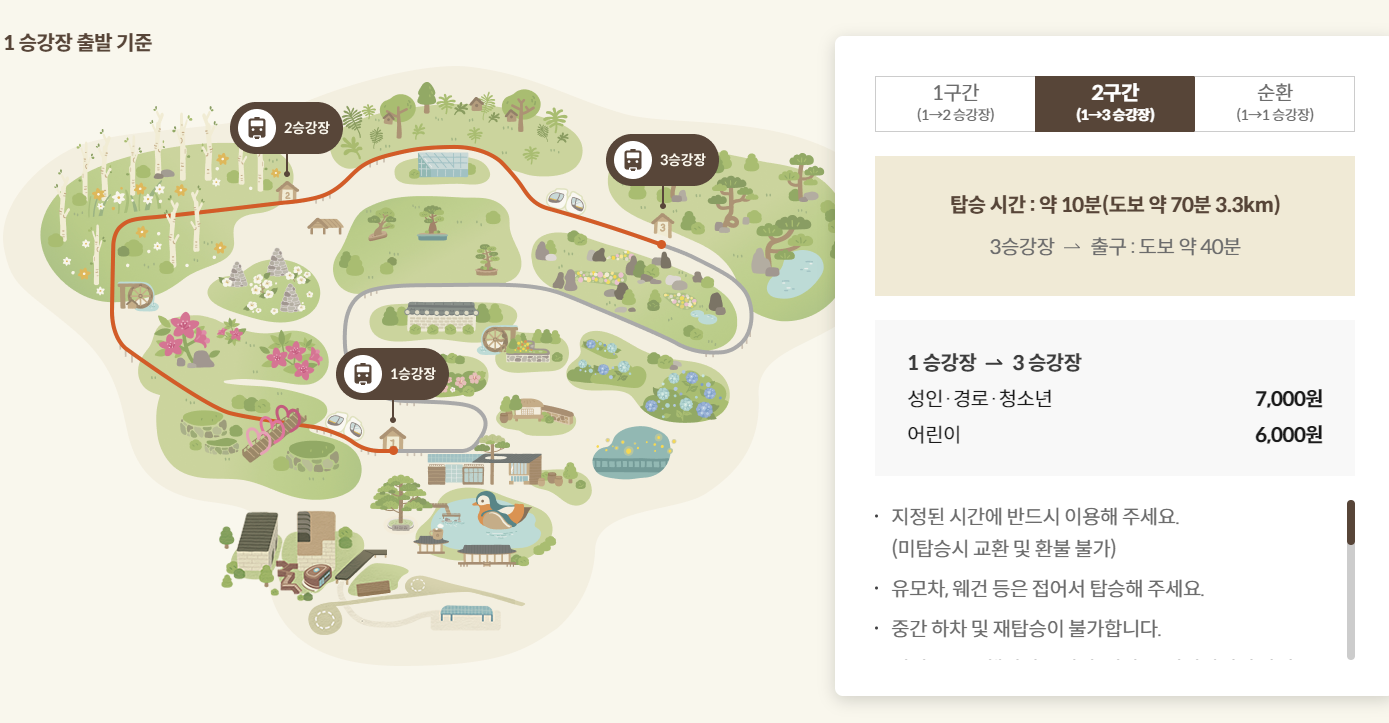 화담숲 모노레일은 1구간 / 2구간 / 순환 이렇게 나누어져요.