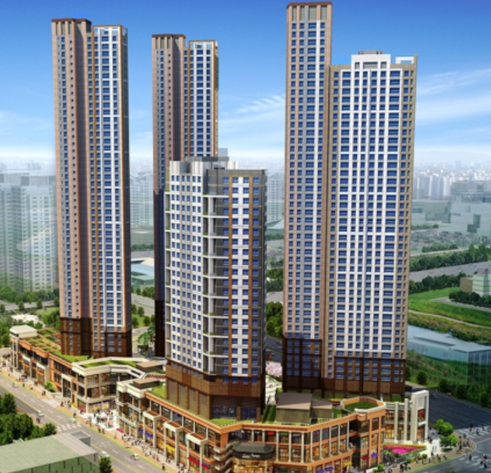 지하4층~지상47층 4개동 총 498세대의 주상복합단지입니다.