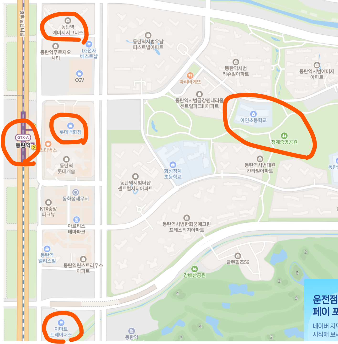 주변 동탄역, 롯데백화점, 이마트 트레이더스, 청계중앙공원까지 편리하게 이용이 가능합니다.