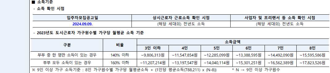 ★ 소득 : 작년 도시근로자 가구당 월평균소득 140% 이하, 맞벌이 160% 이하