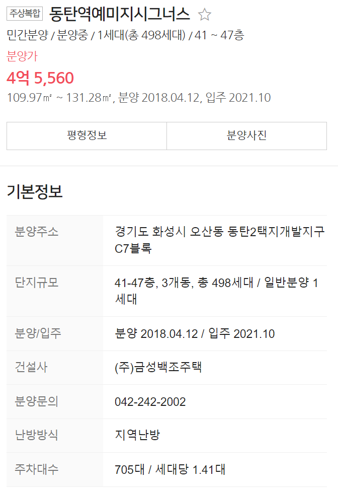 동탄역 예미지시그너스 무순위 물량은 전용면적 84m2, 분양가 4억 5560만원입니다.