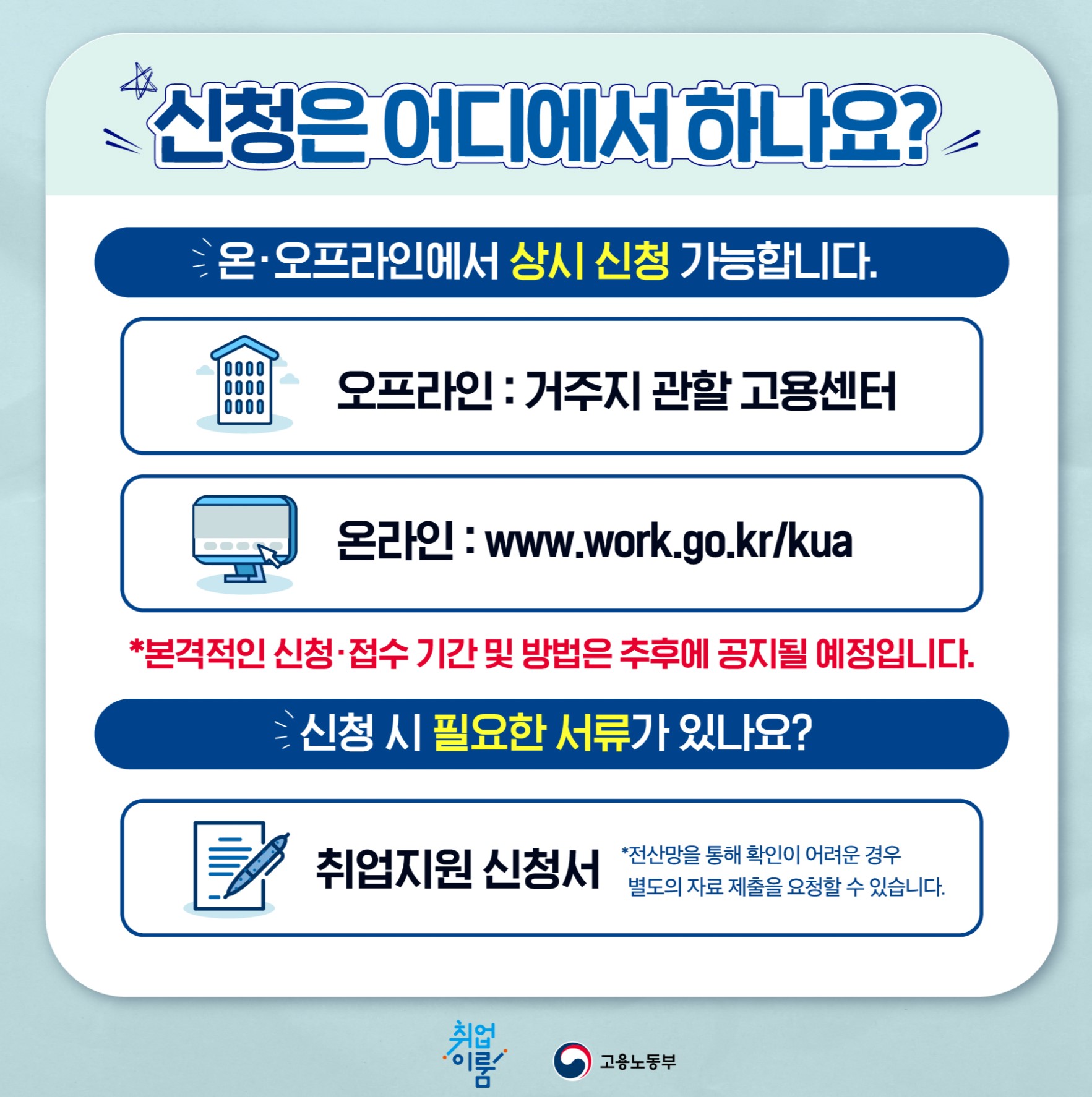 - 오프라인 : 거주지 관할 고용센터 (2021. 1. 1. 부터 접수)